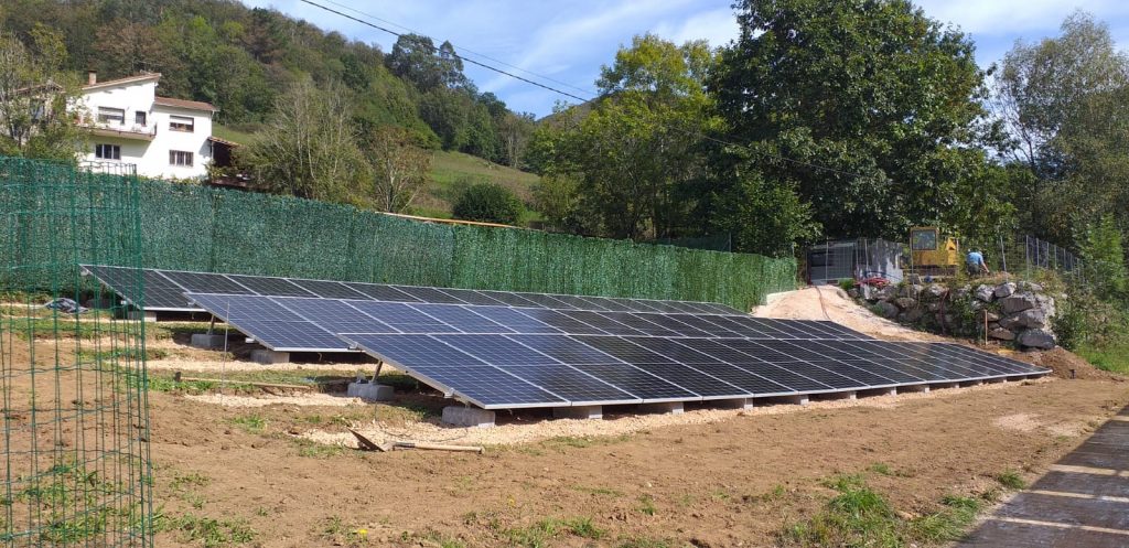 Instalación de paneles solares de 27,50 kW de potencia pico instalada en Avín, Onís.
